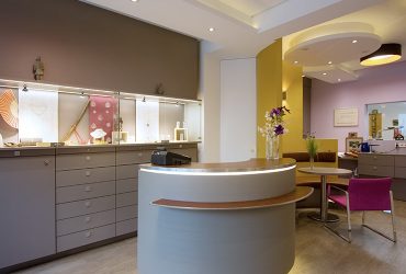 Spezielle Materialien, wie Klinker und Echtstahl, verleihen dem traditionsreichen Fischrestaurant in Hannover-Kirchrode einen neuen, modernen Charme, der rustikal und trotzdem hell und gemütlich wirkt. Durch bewusst eingesetzte Gestaltungselemente entsteht eine geschickte Zonierung zwischen Verkaufs- und Verzehrfläche: Der dunkle Tresen mit Holzlamellendecke trennt sich als eigener Bereich gut vom restlichen Restaurant ab – unterstützt durch die beleuchtete Schrift oberhalb des Tresens. Der Verzehrbereich kontrastiert durch abgedunkeltes Glas mit Sprossen und die Pendelleuchten über den Tischen ergeben einen besonderen Blickfang. Eine Zeitstrahlwand, die die Geschichte der Familie wiedergibt, rundet als Highlight das Erscheinungsbild stilgerecht ab.