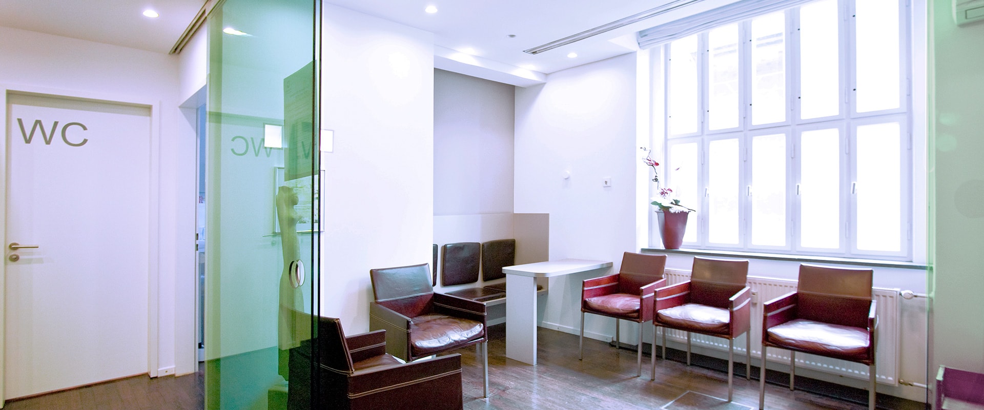 Die Neugestaltung der Gynäkologie im alten Rathaus zeichnet sich durch moderne Architektur aus, die sich in das historische alte Rathaus einfügt. Das denkmalgeschützte Gebäude sollte durch eine neu entstehende Galerie optimal genutzt werden. Im Kontrast zu den Bestandsfenstern und dem vorhandenen Parkettboden stehen trendige Leuchten und Möbel. Die dunkelroten und goldenen Akzentflächen verbinden die neuen Etagen miteinander und lassen die Praxis warm und harmonisch wirken.