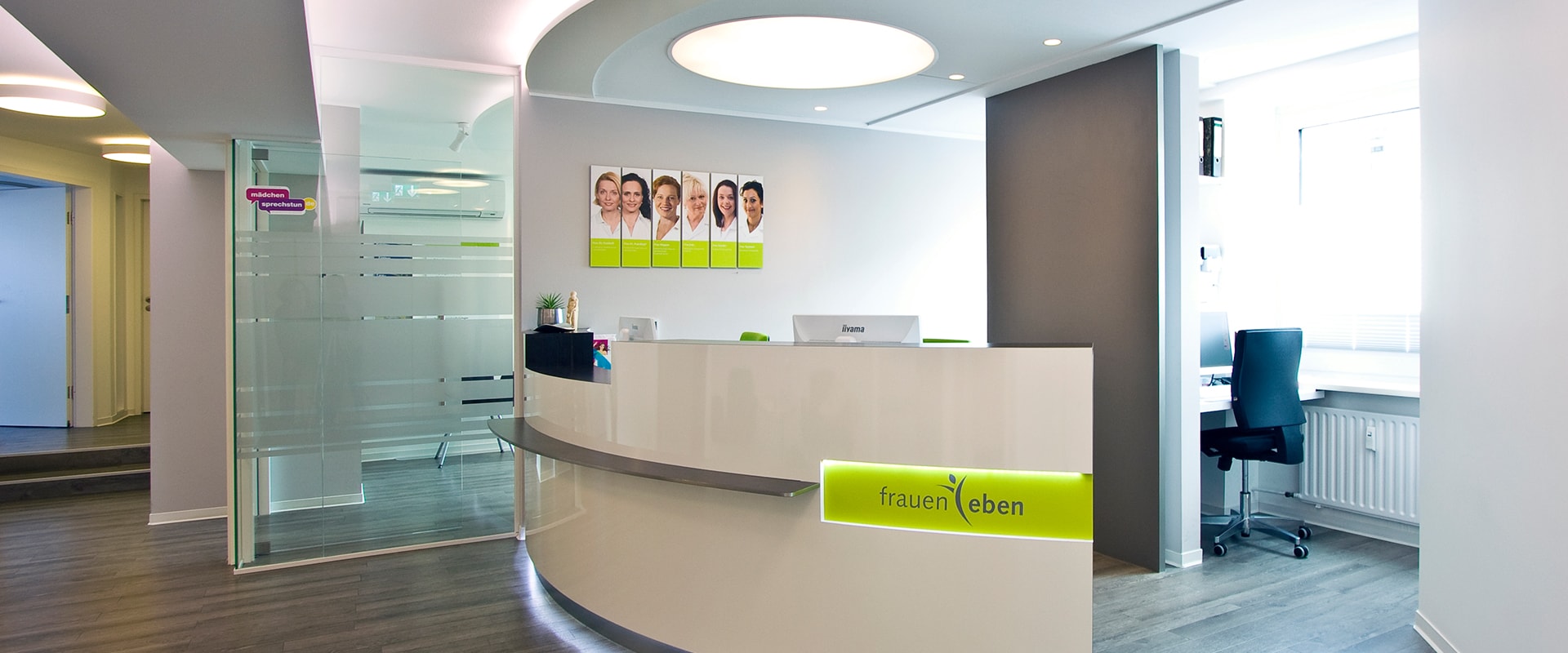 Das neue Praxisdesign der Gynäkologie Kleefeld vermittelt eine zeitlose Ästhetik in Form und Farbe mit Hervorhebung des Corporate Designs. Die neue Raumaufteilung optimiert den Arbeitsablauf in der Praxis und unterstützt zugleich die Orientierung der Patienten. Der Wartebereich ist offen gestaltet und vereinzelte Glaselemente verteilen das Tageslicht in der gesamten Räumlichkeit, wodurch eine angenehme und einladende Atmosphäre geschaffen wird.